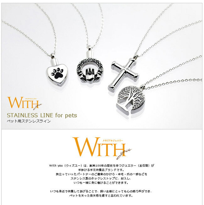 この「ペット用ステンレスライン」は、ステンレス製の遺骨ペンダント(ネックレス)で、ネックストラップに、ペットのご遺骨のかけら・体毛・爪の一部などを封入し、いつも一緒に身に着けて、身近で供養してあげることができます。