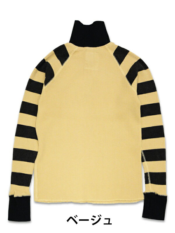 品番:BORDER SLEEVE THERMAL HALF ZIP カラー:ベージュ,ブラック サイズ:サイズ:34(XS), 36(S), 38(M), 40(L), 42(XL) 素材:コットン100% サイズスペック 34 (XS)=身幅45cm ,着丈61cm, 裄丈76cm 36 (S)=身幅46cm ,着丈63cm, 裄丈80m 38 (M)=身幅48cm,着丈66cm,裄丈83cm 40 (L)=身幅50cm,着丈69cm, 裄丈86cm 42 (XL)=身幅52cm,着丈72cm, 裄丈89cm ※ワンウォッシュ済み ※若干の誤差はご了承下さい。