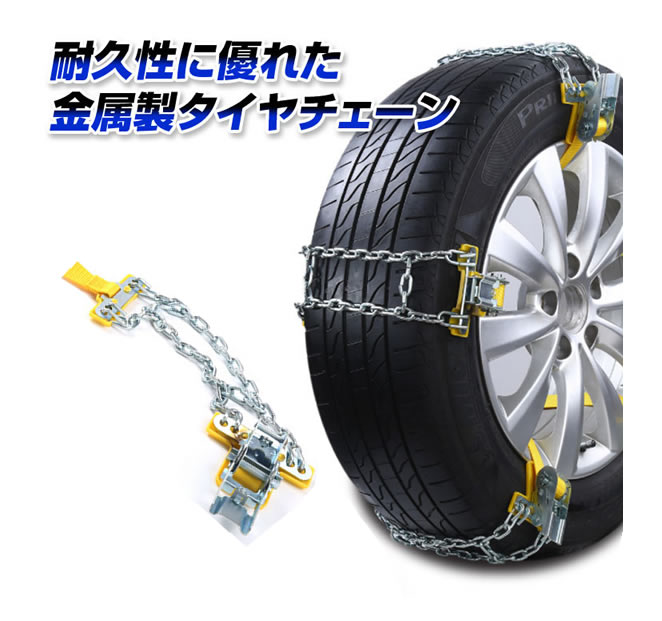ラスト6時間限定クーポン発行中 金属タイヤチェーン タイヤチェーン 滑り止めチェーン 155〜195mm 2輪分 軽量 ジャッキアップ不要 手袋付属 コンパクト収納 雪対策 事故 防止 雪道 凍結 軽自動車 【あす楽対応】